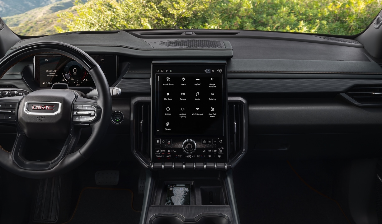The 2026 GMC Acadia offers a seamless connection to your digital life through its advanced infotainment system. The large 15-inch diagonal touchscreen display features crisp, vibrant graphics and responsive touch controls. Wireless Apple CarPlay and Android Auto integration allows you to access your favorite smartphone apps, playlists, and contacts without the need for cords.