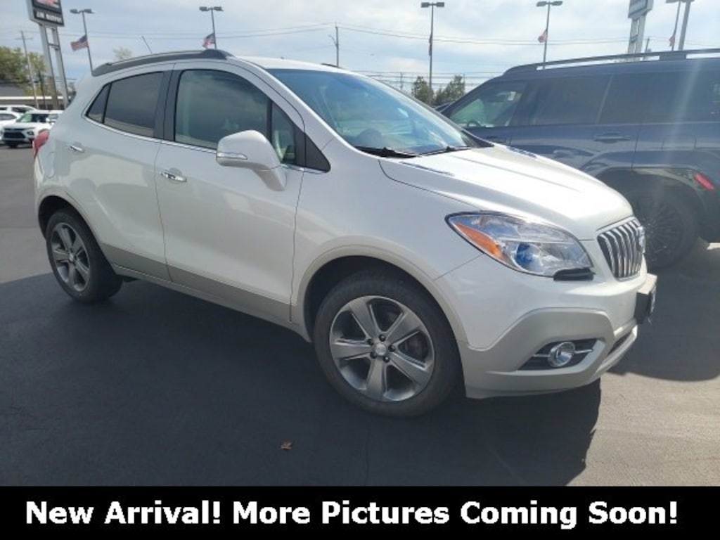 Recent Arrival! 2014 Buick Encore Convenience White Pearl Tricoat FWD ECOTEC 1.4L I4 SMPI DOHC Turbocharged VVT *CLEAN CARFAX NO ACCIDENTS*, *CARFAX 1 OWNER*, BLUETOOTH, USB / AUX INPUTS TO PLAY MUSIC, *REAR VIEW CAMERA*, LOW MILES, 120-Volt Power Outlet, 1SD Equipment Group, 4-Wheel Disc Brakes, ABS brakes, Auto-Dimming Inside Rear-View Mirror, Automatic temperature control, Dual front impact airbags, Dual front side impact airbags, Dual-Zone Automatic Climate Control, Electronic Stability Control, Exterior Parking Camera Rear, Front Fog Lamps, Power driver seat, Radio: AM/FM Audio System w/MP3 CD Player, Rear Cross-Traffic Alert, Remote Vehicle Starter System, Side Blind Zone Alert, SiriusXM Satellite Radio, Steering wheel mounted audio controls, Telescoping steering wheel, Tilt steering wheel, Traction control, Wheels: 18 Painted Cast Aluminum. 25/33 City/Highway MPG