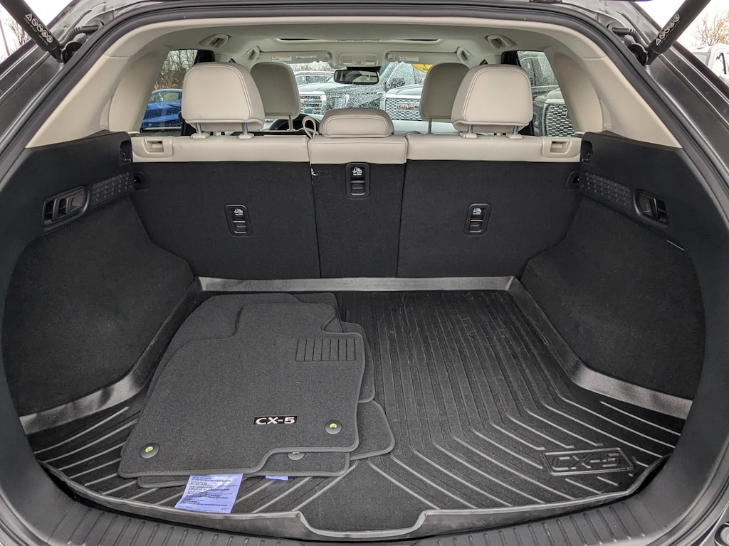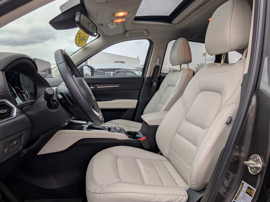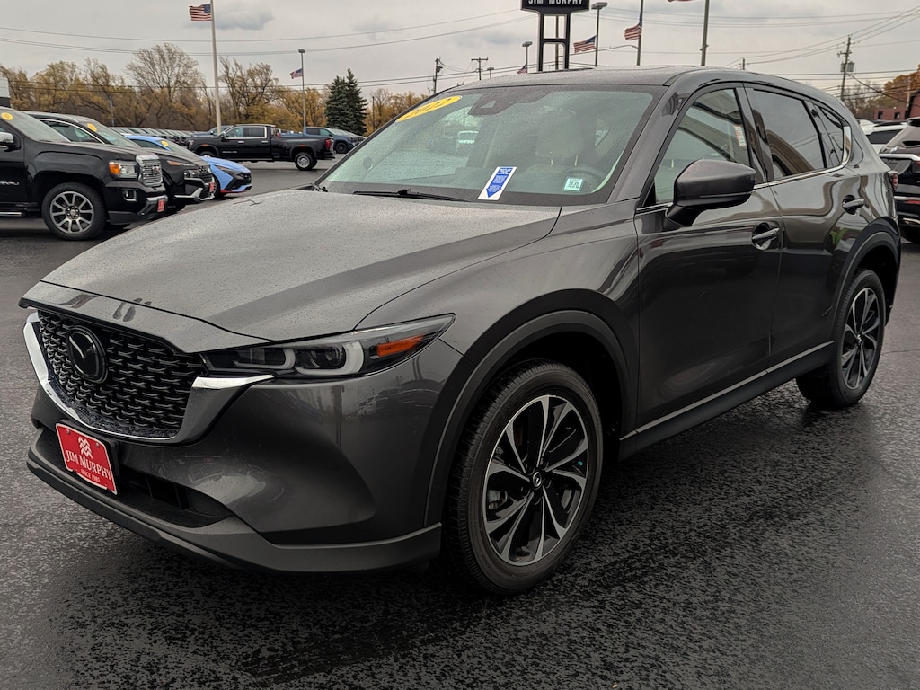 Recent Arrival! 2022 Mazda CX-5 2.5 S Premium Plus Package Machine Gray Metallic AWD SKYACTIV® 2.5L 4-Cylinder DOHC 16V *CLEAN CARFAX NO ACCIDENTS*, *CARFAX 1 OWNER*, BLUETOOTH, USB / AUX INPUTS TO PLAY MUSIC, *REAR VIEW CAMERA*, LOW MILES, 4-Wheel Disc Brakes, ABS brakes, AM/FM radio: SiriusXM, Automatic temperature control, Dual front impact airbags, Dual front side impact airbags, Electronic Stability Control, Front dual zone A/C, Fully automatic headlights, Heads-Up Display, Memory seat, Power driver seat, Power Liftgate, Power moonroof, Premium audio system: Bose, Radio: AM/FM/HD Audio System, SMS Text Msg Audio Delivery & Reply, Steering wheel mounted audio controls, Telescoping steering wheel, Tilt steering wheel, Traction control, Wheels: 19 x 7J Aluminum Alloy. 24/30 City/Highway MPG