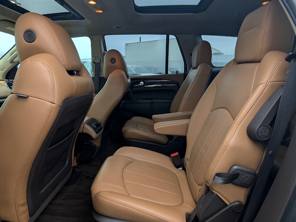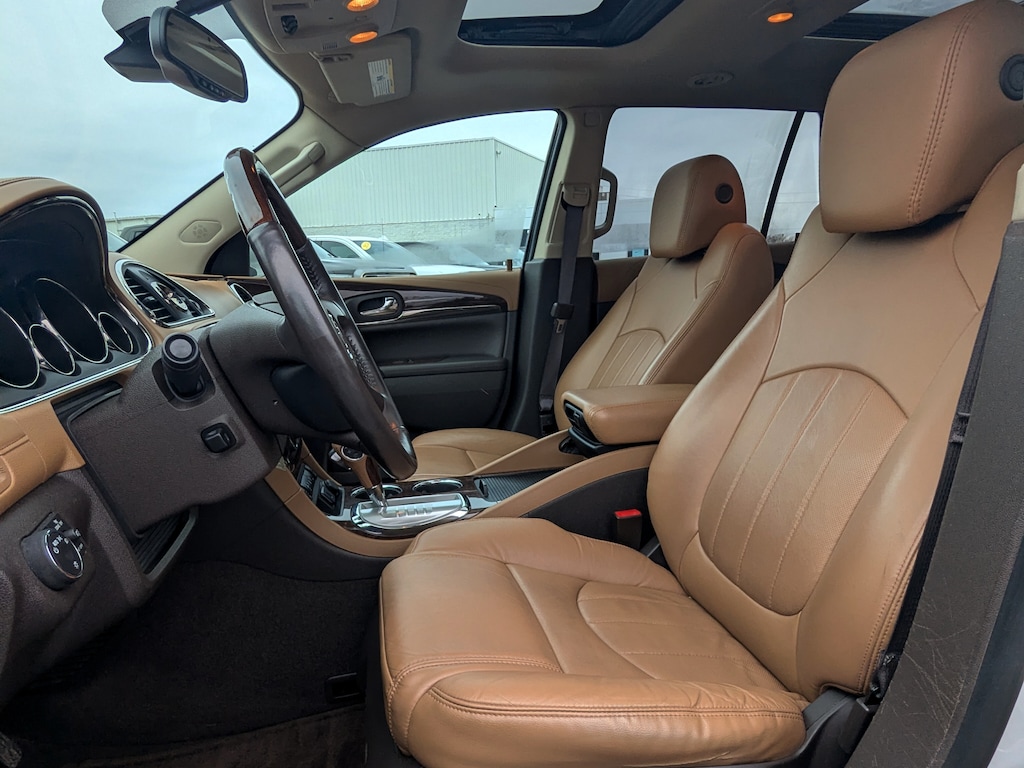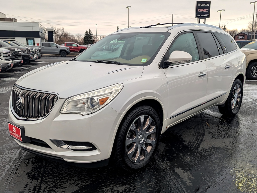 Recent Arrival! 2016 Buick Enclave Premium Group White Frost Tricoat AWD 3.6L V6 SIDI VVT *CARFAX 1 OWNER*, BLUETOOTH, USB / AUX INPUTS TO PLAY MUSIC, *REAR VIEW CAMERA*, LOW MILES, *LEATHER SEATS*, REMOTE STARTER, ALL WHEEL DRIVE - Perfect for Buffalo Winters!, AWD, 4-Wheel Disc Brakes, ABS brakes, Articulating Headlights, Automatic temperature control, Bose Performance-Enhanced 10-Speaker System, Bose Sound System, Bronze-Toned Grille, Dual front impact airbags, Dual front side impact airbags, Electronic Stability Control, Enclave Tuscan Edition, Exterior Parking Camera Rear, Forward Collision Alert & Lane Departure Warning, Front dual zone A/C, Fully automatic headlights, Heated & Cooled Driver & Front Passenger Seats, High intensity discharge headlights: Bi-Xenon, Navigation System, NavTraffic, Power Liftgate, Power Tilt & Telescopic Steering Column, Power Tilt-Sliding Moonroof, Power-Folding Heated Body-Color Outside Mirrors, Preferred Equipment Group 1SN, Premium Package, Radio: Color Touch AM/FM/CD/Nav w/IntelliLink, Rear Audio System Controls, Steering wheel mounted audio controls, Traction control, Wheels: 20 Chrome-Clad Cast Aluminum w/Bronze Pockets.