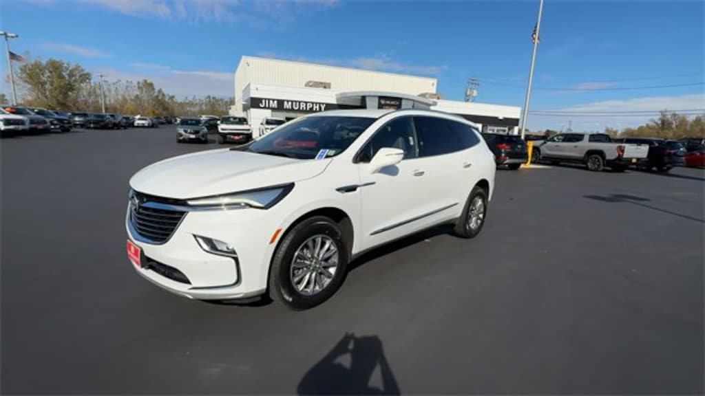 Recent Arrival! 2023 Buick Enclave Essence Summit White AWD 3.6L V6 SIDI VVT *CLEAN CARFAX NO ACCIDENTS*, *CARFAX 1 OWNER*, BLUETOOTH, USB / AUX INPUTS TO PLAY MUSIC, *REAR VIEW CAMERA*, *LEATHER SEATS*, HEATED FRONT SEATS, REMOTE STARTER, ALL WHEEL DRIVE - Perfect for Buffalo Winters!, AWD, 18 Aluminum Wheels, 4-Wheel Disc Brakes, 6-Speaker Audio System Feature, 6-Way Power Front Passenger Seat Adjuster, 7-Passenger Seating, 8-Way Power Driver Seat Adjuster, ABS brakes, Automatic temperature control, Dual front impact airbags, Dual front side impact airbags, Electronic Stability Control, Front & Rear Park Assist, Front Bucket Seats, Front dual zone A/C, Fully automatic headlights, Heated Driver & Front Passenger Seats, Heated Steering Wheel, Power Driver Lumbar Control Seat Adjuster, Power Liftgate, Power Passenger Lumbar Control Seat Adjuster, Preferred Equipment Group 1SL, Radio: Buick Infotainment System AM/FM Stereo, SiriusXM w/360L, Steering wheel mounted audio controls, Telescoping steering wheel, Tilt steering wheel, Traction control, Wireless Apple CarPlay/Wireless Android Auto.