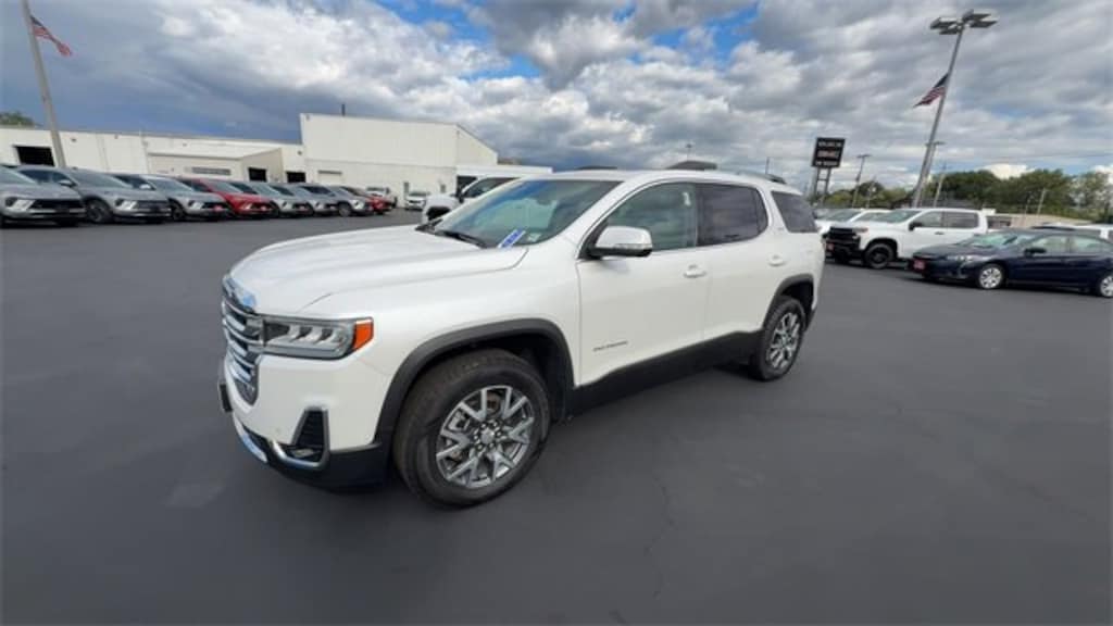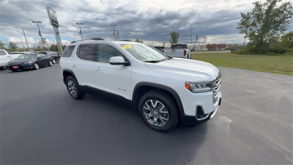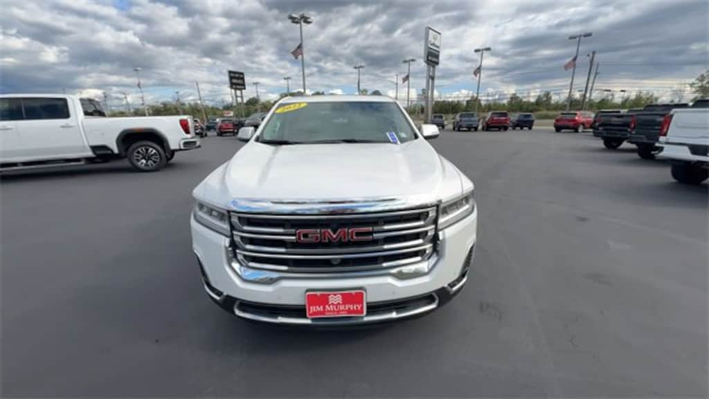 Recent Arrival! 2022 GMC Acadia SLT White Frost Tricoat AWD 2.0L Turbocharged *CLEAN CARFAX NO ACCIDENTS*, *CARFAX 1 OWNER*, BLUETOOTH, USB / AUX INPUTS TO PLAY MUSIC, *REAR VIEW CAMERA*, *LEATHER SEATS*, HEATED FRONT SEATS, REMOTE STARTER, ALL WHEEL DRIVE - Perfect for Buffalo Winters!, AWD, Cocoa/Light Ash Gray Leather, 18 Aluminum Wheels, 4-Wheel Disc Brakes, 8-Way Power Passenger Seat Adjuster, 8 Multi-Color Enhanced Dr Instrument Info Display, ABS brakes, Automatic temperature control, Bose Premium 8-Speaker Audio System Feature, Dual front impact airbags, Dual front side impact airbags, Dual SkyScape 2-Panel Power Sunroof, Electronic Stability Control, Front dual zone A/C, Front fog lights, Fully automatic headlights, HD Surround Vision, Heads-Up Display, Heated & Ventilated Driver & Front Passenger Seats, Heated Rear Outboard Seating Positions, Heated Steering Wheel, Luxury Package, Memory Package, Navigation System, Power Liftgate, Power Passenger Lumbar Control Seat Adjuster, Power Tilt & Telescopic Steering Column, Power-Adjustable Body-Color Outside Heated Mirrors, Preferred Equipment Group 4SA, Preferred Package, Radio: AM/FM 8 Diagonal Multi-Touch Navigation, SiriusXM w/360L, Steering wheel mounted audio controls, Technology Package, Telescoping steering wheel, Tilt steering wheel, Traction control, Wireless Apple CarPlay/Wireless Android Auto. 22/27 City/Highway MPG