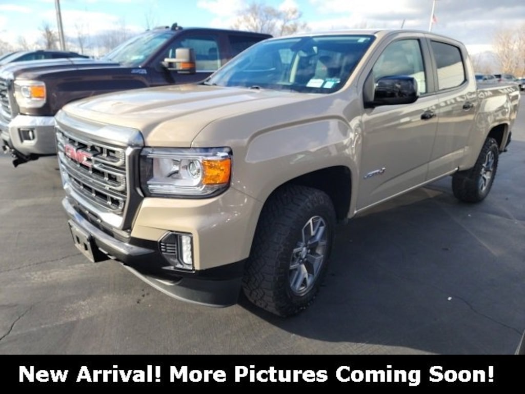 Recent Arrival! 2022 GMC Canyon AT4 w/Leather Desert Sand Metallic 4WD V6 *CLEAN CARFAX NO ACCIDENTS*, *CARFAX 1 OWNER*, BLUETOOTH, USB / AUX INPUTS TO PLAY MUSIC, *REAR VIEW CAMERA*, LOW MILES, *LEATHER SEATS*, HEATED FRONT SEATS, REMOTE STARTER, 4 WHEEL DRIVE - Perfect for Buffalo Winters!, 4WD, 2 USB Data Ports, 4-Wheel Disc Brakes, ABS brakes, Automatic temperature control, Bose Premium 7-Speaker Audio System Feature, Driver 6-Way Power Seat Adjuster, Driver Instrument Information Enhanced Display, Dual front impact airbags, Dual front side impact airbags, Exterior Parking Camera Rear, Front fog lights, Fully automatic headlights, HD Radio, HD Rear Vision Camera, Hitch Guidance, Power driver seat, Preferred Equipment Group 4SB, Radio: AM/FM w/8 Diagonal Multi-Touch Display Nav, Steering wheel mounted audio controls, Telescoping steering wheel, Tilt steering wheel, Tow/Haul Mode, Traction control, Trailering Package, Wheels: 17 x 8 Dark Argent Metallic.