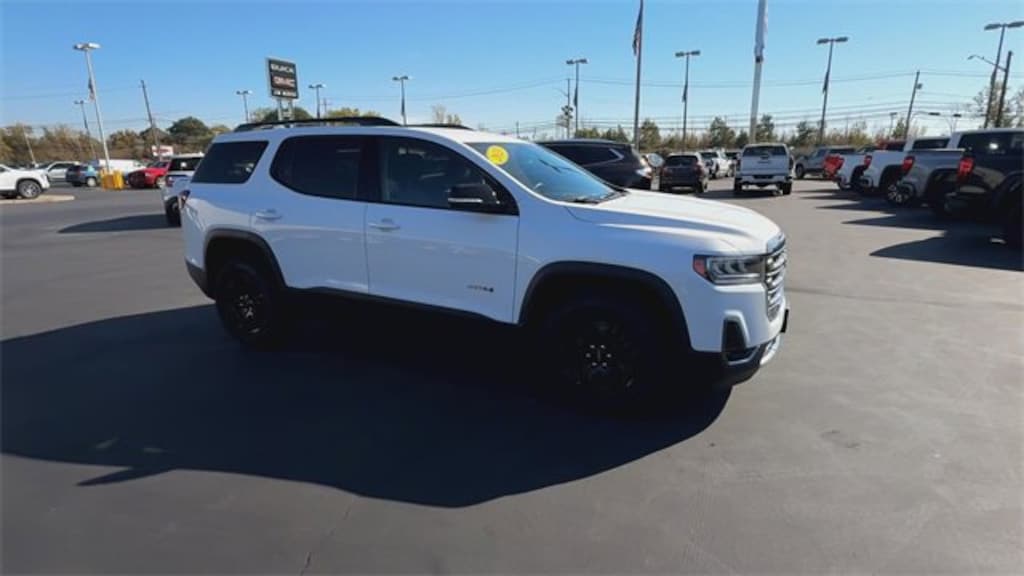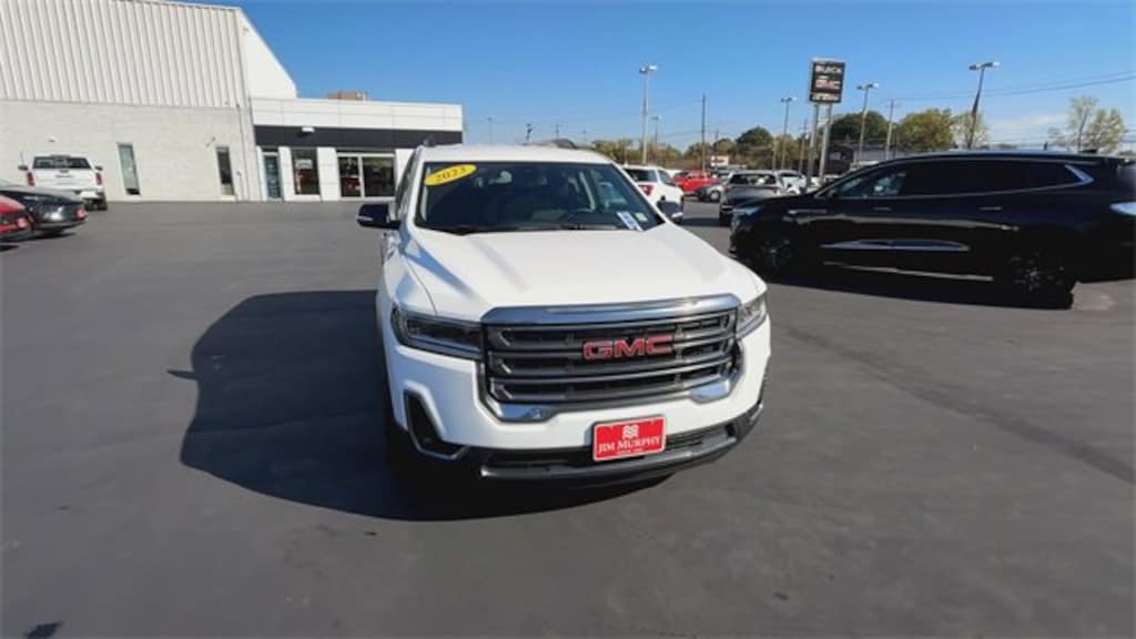 Recent Arrival! 2023 GMC Acadia AT4 Summit White AWD 3.6L V6 SIDI *CARFAX 1 OWNER*, *SOLD & SERVICED AT JIM MURPHY*, BLUETOOTH, USB / AUX INPUTS TO PLAY MUSIC, *REAR VIEW CAMERA*, LOW MILES, HEATED FRONT SEATS, PREMIUM WHEELS, REMOTE STARTER, ALL WHEEL DRIVE - Perfect for Buffalo Winters!, *HEATED STEARING WHEEL*, AWD, Jet Black Cloth, 4-Way Manual Passenger Seat Adjuster, 4-Wheel Disc Brakes, 6-Passenger (2-2-2 Seating Configuration), 8-Way Power Driver Seat Adjuster, ABS brakes, Automatic temperature control, Black Center Caps w/Red GMC Logo (LPO), Bose Premium 8-Speaker Audio System Feature, Dual front impact airbags, Dual front side impact airbags, Electronic Stability Control, Front dual zone A/C, Front fog lights, Fully automatic headlights, Heated Driver & Front Passenger Seats, Navigation System, Power Driver Lumbar Control Seat Adjuster, Power Liftgate, Preferred Equipment Group 4SB, Radio: AM/FM 8 Diagonal Multi-Touch Navigation, SiriusXM w/360L, Steering wheel mounted audio controls, Telescoping steering wheel, Tilt steering wheel, Traction control, Wheels: 17 Gloss Black Aluminum, Wireless Apple CarPlay/Wireless Android Auto. Odometer is 9848 miles below market average! 19/26 City/Highway MPG