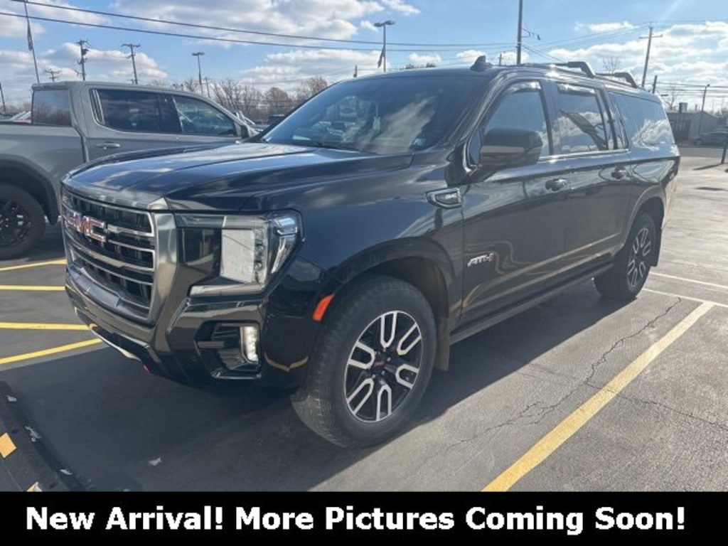 Recent Arrival! 2023 GMC Yukon XL AT4 Onyx Black 4WD EcoTec3 5.3L V8 *CLEAN CARFAX NO ACCIDENTS*, *CARFAX 1 OWNER*, BLUETOOTH, USB / AUX INPUTS TO PLAY MUSIC, *REAR VIEW CAMERA*, 4 WHEEL DRIVE - Perfect for Buffalo Winters!, 4WD, 15 Diagonal Multi-Color Head-Up Display, 2 Presets For Outside Rearview Mirrors, 3 Years of GMC Connected Services, 3 Years of OnStar Safety & Security, 3rd Row 60/40 Power-Folding Split-Bench Seat, 4-Wheel Disc Brakes, ABS brakes, Adaptive suspension, Auto-leveling suspension, Automatic temperature control, Black Roof-Mounted Luggage Rack Side Rails, Bose 9-Speaker Stereo Audio System Feature, Bright Front & Rear Door Sill Plates, Dual front impact airbags, Dual front side impact airbags, Dual-Pane Panoramic Power Sunroof, Electronic Stability Control, Front & Rear Park Assist, Front dual zone A/C, Front fog lights, Front High-Approach Angle Fascia, Fully automatic headlights, Hands-Free Power Programmable Rear Liftgate, HD Surround Vision, Heated & Ventilated Driver & Front Passenger Seats, Heated 2nd Row Outboard Position Seats, Heated Driver & Front Passenger Seats, Heated Steering Wheel, Heavy-Duty Air Filter, Hill Descent Control, Inside Rear-View Auto-Dimming Mirror, Magnetic Ride Control Suspension, Memory seat, Navigation System, Outside Heated Power-Adjustable Mirrors, Power driver seat, Power Liftgate, Power Release 2nd Row 60/40 Split-Folding Bench Seat, Power Tilt & Telescopic Steering Column, Preferred Equipment Group 4SB, Rear Pedestrian Alert, Red Horizontal-Mounted Recovery Hooks, Safety Alert Seat, SiriusXM w/360L, Steering wheel mounted audio controls, Technology Package, Telescoping steering wheel, Tilt steering wheel, Traction control, Universal Home Remote, Wheels: 20 x 9 6-Spoke Machined Aluminum, Wireless Charging.