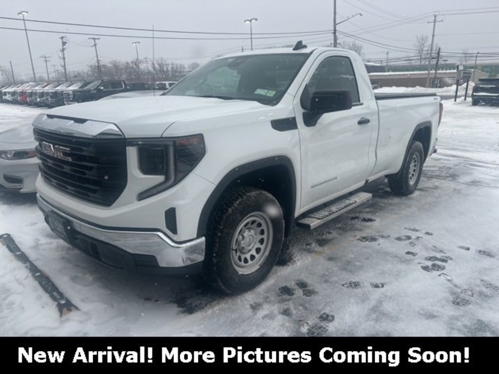 Recent Arrival! 2024 GMC Sierra 1500 Pro Summit White 4WD EcoTec3 5.3L V8 *CLEAN CARFAX NO ACCIDENTS*, *CARFAX 1 OWNER*, BLUETOOTH, USB / AUX INPUTS TO PLAY MUSIC, *REAR VIEW CAMERA*, LOW MILES, 4 WHEEL DRIVE - Perfect for Buffalo Winters!, 10-Speed Automatic, 4WD, Black Cloth, 2 Charge/Data USB Ports, 2-Speaker Audio System Feature, 220 Amp Alternator, 4-Wheel Disc Brakes, ABS brakes, Auto-Locking Rear Differential, Chrome Header w/Flat Black Grille Insert Bars, Convenience Package, Cruise Control, Deep-Tinted Glass, Dual front impact airbags, Dual front side impact airbags, Electric Rear-Window Defogger, EZ Lift Power Lock & Release Tailgate, Front Frame-Mounted Black Recovery Hooks, Fully automatic headlights, GMC Connected Access Capable, HD Rear Vision Camera, Heavy-Duty Air Filter, Hitch Guidance, LED Cargo Area Lighting, OnStar & GMC Connected Services Capable, Power Door Locks, Power Front Windows w/Driver Express Up/Down, Power Front Windows w/Passenger Express Down, Preferred Equipment Group 1SA, Premium audio system: GMC Infotainment System, Pro Value Package, Push Button Start, Radio: GMC Infotainment Audio System, Remote Keyless Entry, Snow Plow Prep Package, Solar Absorbing Tinted Glass, Standard Suspension Package, Tilt steering wheel, Traction control, Trailering Package, Wheels: 17 x 8 Silver Painted Steel, Wi-Fi Hotspot Capable, Wireless Apple CarPlay/Wireless Android Auto.