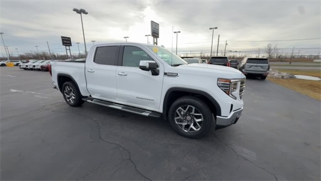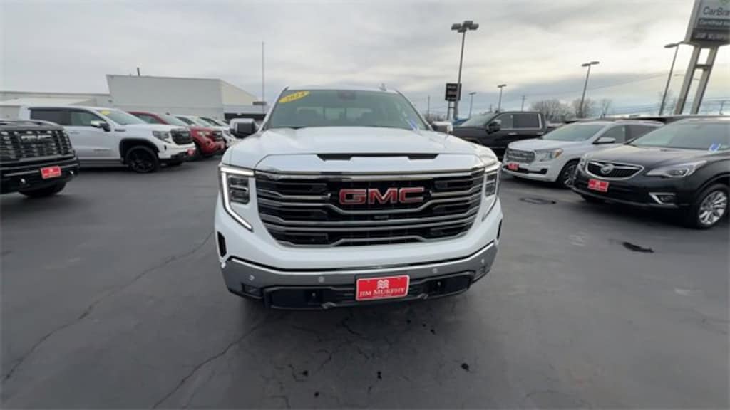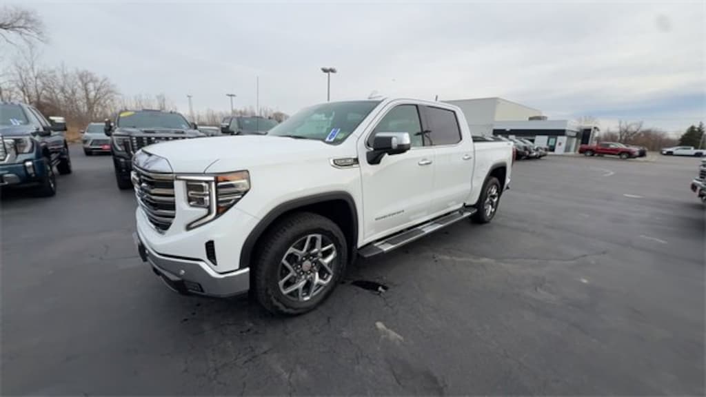 Recent Arrival! 2024 GMC Sierra 1500 SLT Summit White 4WD EcoTec3 5.3L V8 *CLEAN CARFAX NO ACCIDENTS*, *CARFAX 1 OWNER*, BLUETOOTH, USB / AUX INPUTS TO PLAY MUSIC, *REAR VIEW CAMERA*, LOW MILES, *LEATHER SEATS*, HEATED FRONT SEATS, REMOTE STARTER, 4 WHEEL DRIVE - Perfect for Buffalo Winters!, 10-Speed Automatic, 4WD, Dark Walnut/Slate Leather, 120-Volt Bed Mounted Power Outlet, 120-Volt Interior Power Outlet, 170 Amp Alternator, 2 Charge/Data USB Ports, 2 Charge/Data USB Ports Inside Center Console, 2 Type-C Charge-Only Rear USB Ports, 20 Polished Aluminum Wheels, 4-Wheel Disc Brakes, 6-Speaker Audio System Feature, ABS brakes, Adaptive Cruise Control, Auto-Locking Rear Differential, Automatic temperature control, Auxiliary External Transmission Oil Cooler, Chrome Header & Chrome Grille Insert Bars, Chrome Wheel To Wheel Assist Steps, Color-Keyed Carpeting Floor Covering, Deep-Tinted Glass, Dual Exhaust System, Dual front impact airbags, Dual front side impact airbags, Electric Rear-Window Defogger, Electronic Precision Shift, Electronic Stability Control, Floor-Mounted Center Console, Front Bucket Seats, Front fog lights, Front Frame-Mounted Black Recovery Hooks, Front Rain-Sensing Wipers, GMC Connected Access Capable, HD Rear Vision Camera, HD Surround Vision, Heated 2nd Row Outboard Seats, Heavy-Duty Air Filter, High Capacity Suspension Package, Hill Descent Control, Hitch Guidance, Hitch View, In-Vehicle Trailering System App, Integrated Trailer Brake Controller, Keyless Open & Start, LED Cargo Area Lighting, Manual Tilt-Wheel & Telescoping Steering Column, Navigation System, Off-Road Suspension, OnStar & GMC Connected Services Capable, Perimeter Lighting, Power Door Locks, Power Front Passenger Windows w/Express Up/Down, Power Front Windows w/Driver Express Up/Down, Power Rake & Telescoping Steering Column, Power Rear Windows w/Express Down, Power Sliding Rear Window w/Rear Defogger, Power Sunroof, Preferred Equipment Group 4SA, Premium Bose 7-Speaker Sound System, ProGrade Trailering System, Push Button Start, Rear Cross Traffic Braking, Rear Pedestrian Detection, Rear Wheelhouse Liners, Remote Vehicle Starter System, Safety Alert Seat, Sierra Safety Plus Package, SiriusXM w/360L, SLT Convenience Package, SLT Preferred Package, SLT Premium Plus Package, Spray-On Pickup Bedliner w/GMC Logo, Standard Suspension Package, Steering Wheel Audio Controls, Steering wheel mounted audio controls, Telescoping steering wheel, Theft Deterrent System (Unauthorized Entry), Tilt steering wheel, Trailer Camera Provisions, Trailer Side Blind Zone Alert, Trailering Package, Ultrasonic Front & Rear Park Assist, Universal Home Remote, Ventilated Driver & Front Passenger Seats, Wi-Fi Hotspot Capable, Wireless Charging, X31 Hard Badge, X31 Off-Road Package. Odometer is 5341 miles below market average! Priced below KBB Fair Purchase Price!